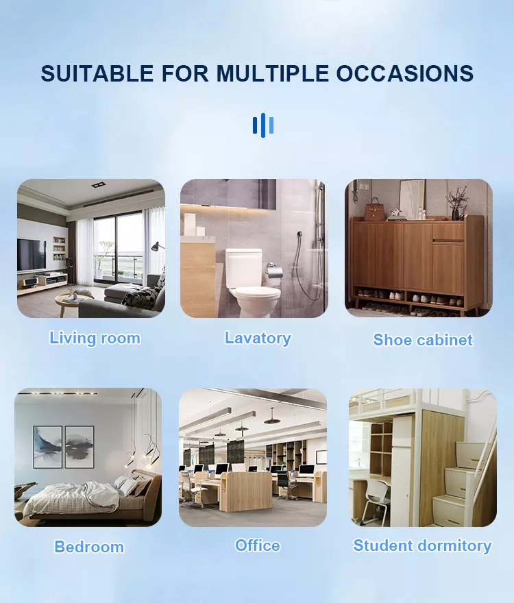 1.Family Isticmaalka: Lagu meeleeyay qolka fadhiga, qolka jiifka, jikada iyo meelaha kale ee guriga, waxay si wax ku ool ah uga saari karaan cabitaan cabitaan, ur, qoyaan iyo wixii qoyaan iyo wixii qoyaan iyo wixii ka dambeeya.